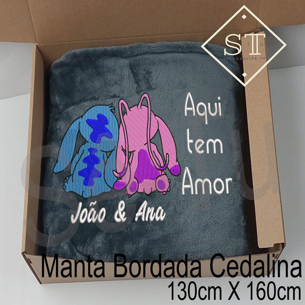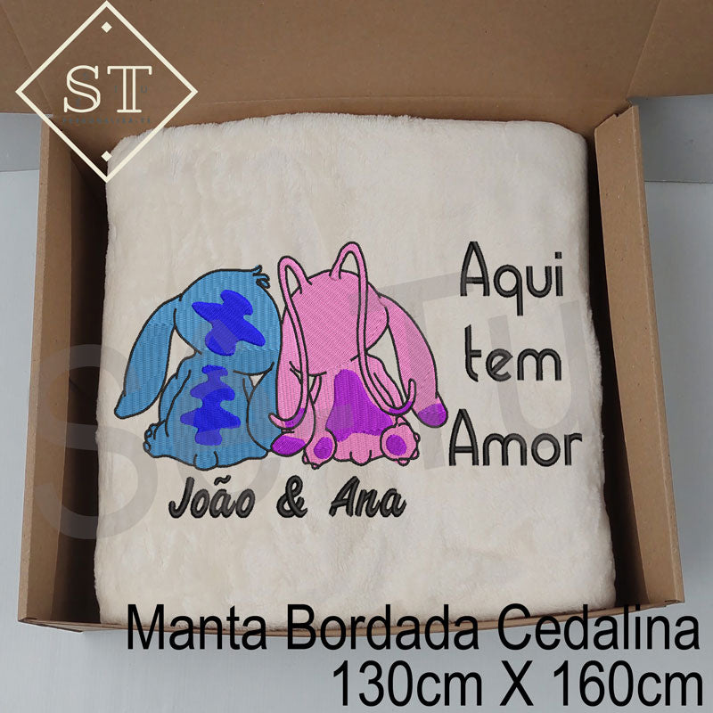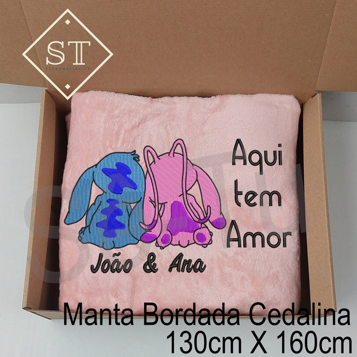 Manta Stitch & Angel - Aqui tem Amor